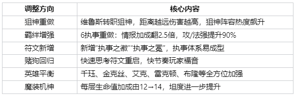 💡版本趋势:整体前后排补强,助力狙神、执事双核体系。