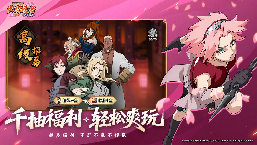 正版授权、开局双SSS、挂机放大招、海外不卡顿,火影粉必须冲!