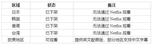可以看到:日韩港台观众已经完全看不到,而欧美区还能看,但只有英文配音/部分字幕,体验并不完整。